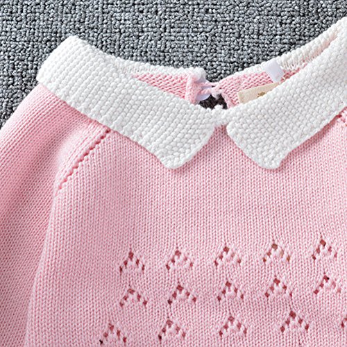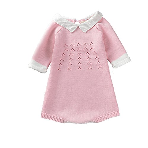ZooArts ベビー服 キッズ服 ロンパース ニット 新生児サイズ 女の子 スイート ドレス 子供服 長袖(七分) カバーオール ワンピース 赤ちゃん 春秋 あんよしはじめる (90(18-24ヶ月), ピンク)