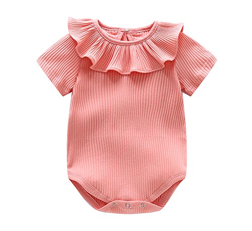 ZooArts ベビー服 ロンパース かわいい 新生児サイズ 男の子 女の子 半袖 夏 無地 綿 カバーオール ワンピース 赤ちゃん 柔らかい おしゃれ あんよしはじめる (ピンク, 59(3~6ヶ月))