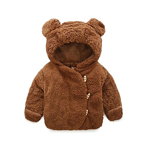 ZooArts ベビー服 コート 新生児サイズ 厚手 ジャケット 可愛い クマの耳 フード付き 秋冬 防寒 保温 アウターウェア 女の子 男の子 子供服 ファッション おしゃれ ふわふわ 暖かい (ブラウン, 80(9~12ヶ月))