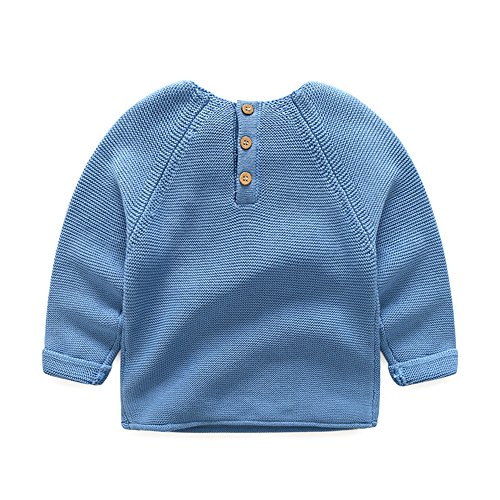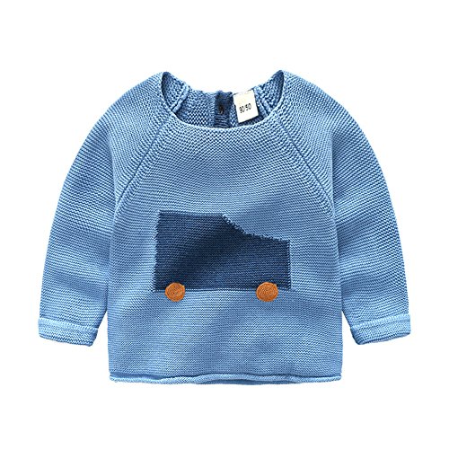 ZooArts 子供服 セーター 秋冬 ベビー キッズ ニット 100%綿 男の子 女の子 男女兼用 かわいい 乗り物柄 トップス 長袖 丸い襟 ファッション おしゃれ ルームウェア カジュアル (ブルー, 90)