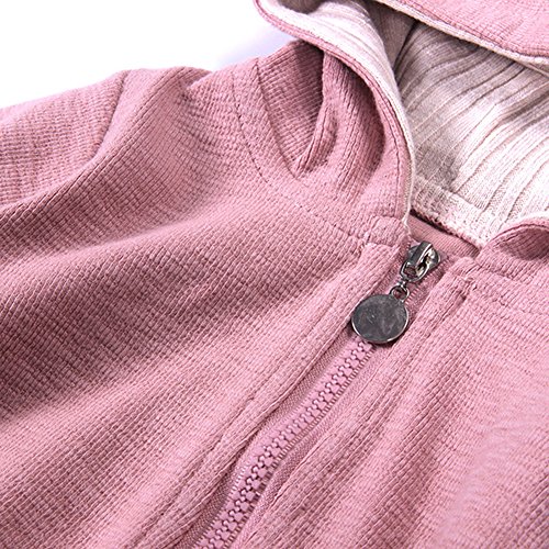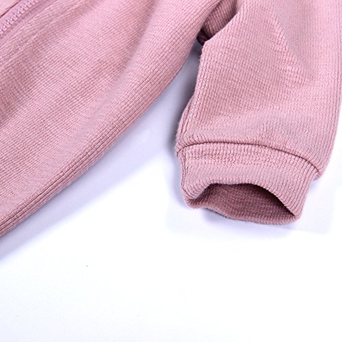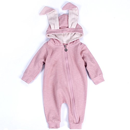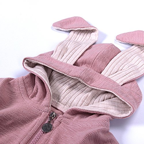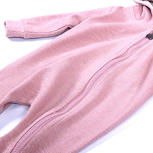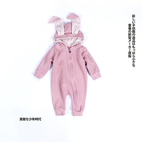 ZooArts ベビー服 ロンパース かわいい耳 ウサギ 新生児 男の子 女の子 赤ちゃん服 子供服 長袖 前開き カバーオール ワンピース 満月/出産祝い/プレゼント 春用 秋用 あんよしはじめる (66(0-6ヶ月), ピンク)