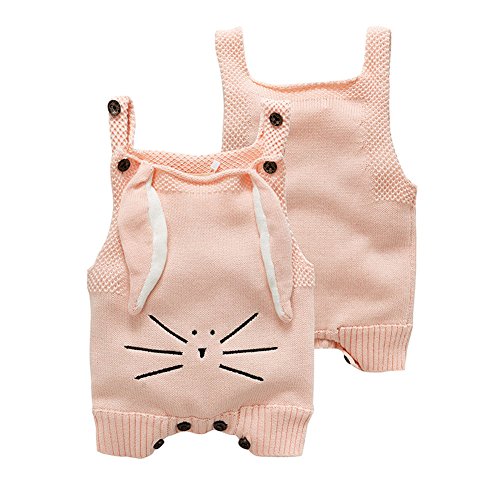 ZooArts ベビー服 ロンパース ニット コットン 新生児サイズ かわいい 兎の耳 女の子 男の子 子供服 カバーオール ワンピース 赤ちゃん服 夏用 秋用 あんよしはじめる (70(7-9ヶ月), ピンク)