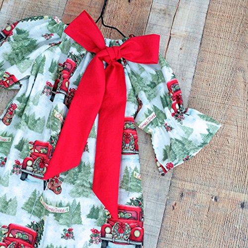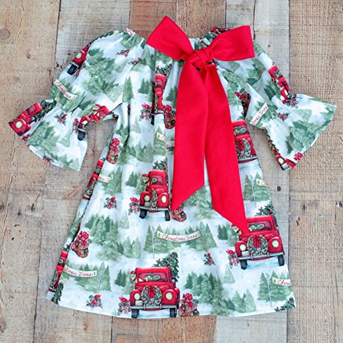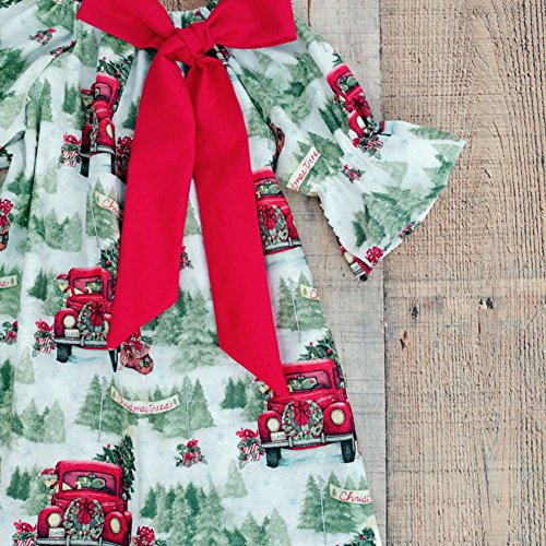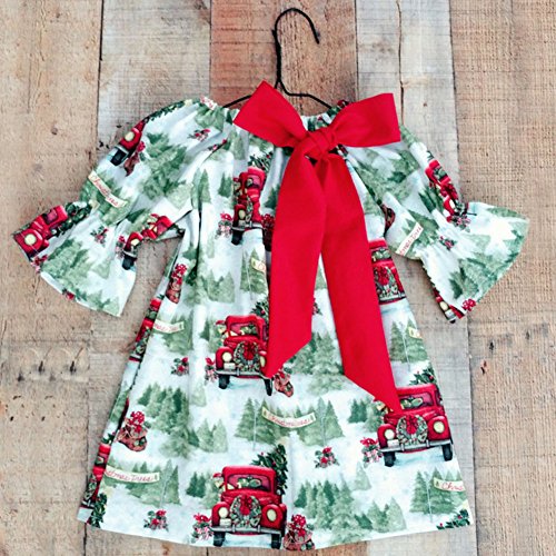 ZooArts 子供服 クリスマス サンタ衣装 女の子 ワンピース 雪景色柄 プリント 綺麗 蝶結び リボン 長袖 ドレス キッズ 春秋 おしゃれ スイート (120(5歳))