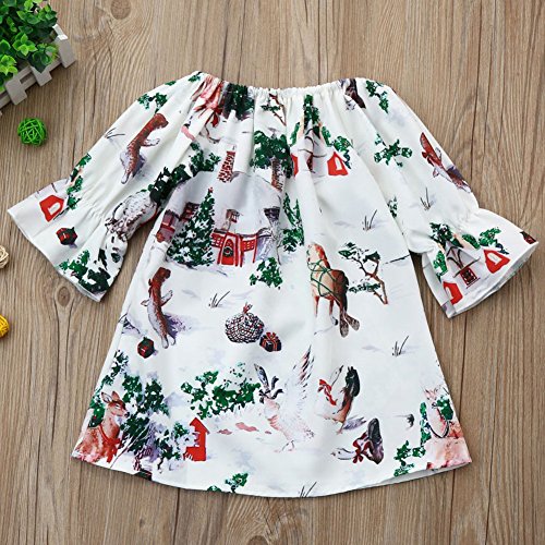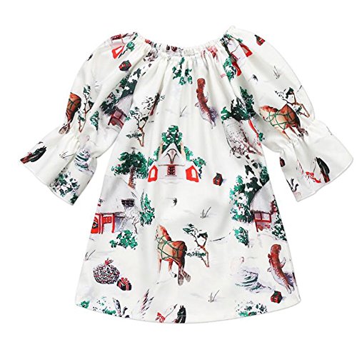 ZooArts 子供服 クリスマス サンタ衣装 女の子 ワンピース 雪景色柄 綺麗 プリント 長袖 ドレス キッズ 春秋 おしゃれ スイート (100(3歳))