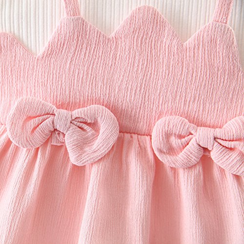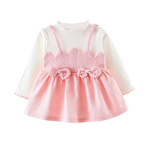 ZooArts ベビー服 ワンピース プリンセスドレス スカート 女の子 可愛い 蝶結び 長袖 春 夏 秋 幼児サイズ 赤ちゃん服 おしゃれ ファッション 出産祝い 誕生日プレゼント 3色 (ピンク, 75CM(0-6ヶ月))