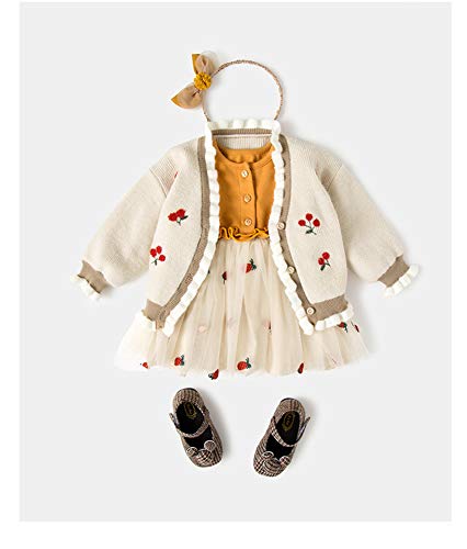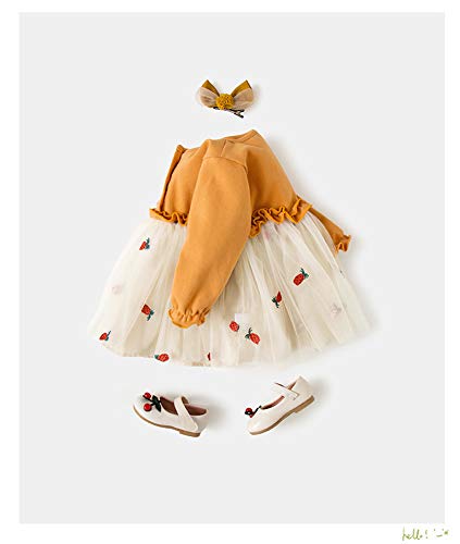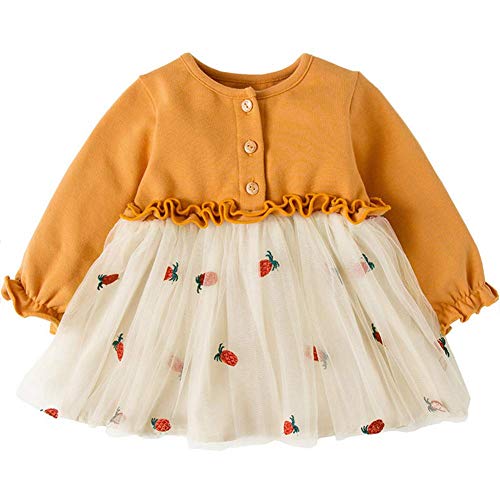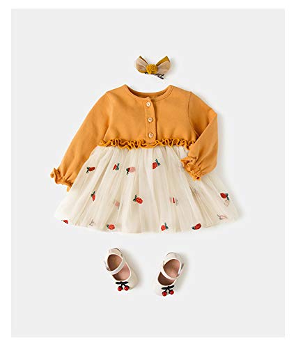 ZooArts ベビー ワンピース 女の子 長袖 ガールズ プリンセスドレス チュールスカート かわいい パイナップル刺繍 おしゃれ 春秋 出産祝い 通園 お出かけ用 2色展開 (イエロー, 73)