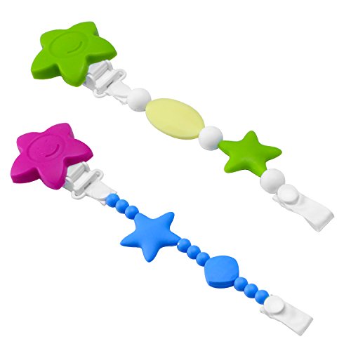 おしゃぶりホルダー - Zooawa 出産お祝い 情緒安定 歯がため おしゃぶりホルダー 2枚セット RED&GREEN