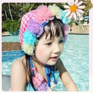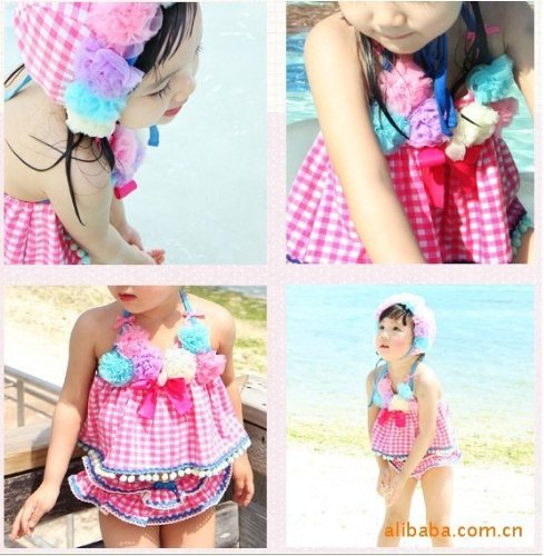 女児 水着 子供 愛らしくかわいい 花柄付 セパレート キッズ かわいいスイムキャップ付 Zroot (4T(四才用))