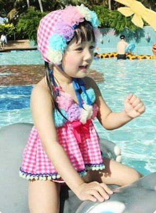 ★かわいい女児用水着です。花柄がたくさん付いておりとてもかわいく愛らしい水着です。