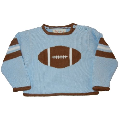 「小屋がハイキング、小屋。。。」完璧な秋のスポーティーなセーターに着用ゲームを開始することができます。このソフト綿100のセーターは大きなIntarsiaフットボール。で飾らこの方法は、各色に、個々のボールをの糸。これは美しく、ニットさと人生のスポーティなLITTLE GUY。