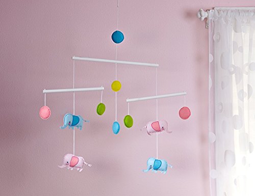 Zutano Blue Elephantiasis Ceiling Mobile - Sweet pink and blue elephants, brightly colored retro circles and white wood bars adorn this adorable ceiling mobile. This adorable ceiling mobile adds a touch of whimsy and is the perfect accent piece to finish your nursery and captivate baby. Sways gently in the breeze. Coordinates with a complete line of Zutano Elephantiasis infant bedding and decor.