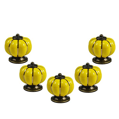 abcGOODefg Pumpkin Konbsヨーロッパスタイルセラミックパンプキンノブ引き出しキャビネット食器棚ドアプルハンドルロッカー 5 PCS CA-PUMPKIM-YL-5P