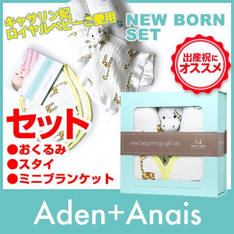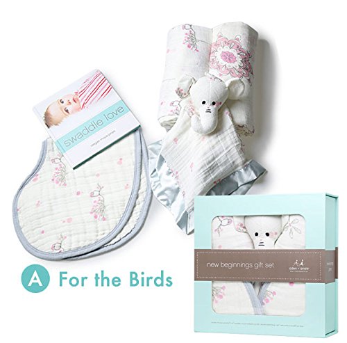 aden + anais (エイデンアンドアネイ) ギフトセット 出産祝い おくるみ スタイ ブランケット ぬいぐるみ NEW BORN SET 【並行輸入品】 A For the Birds