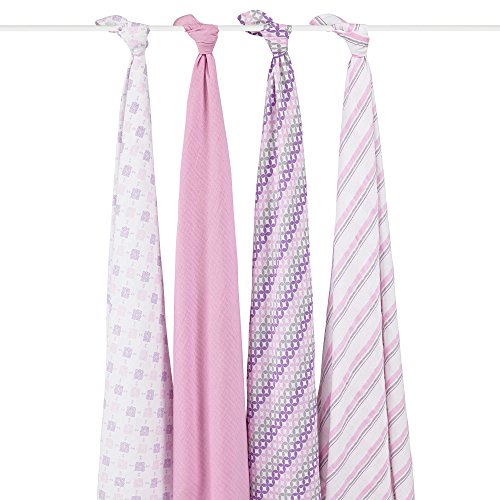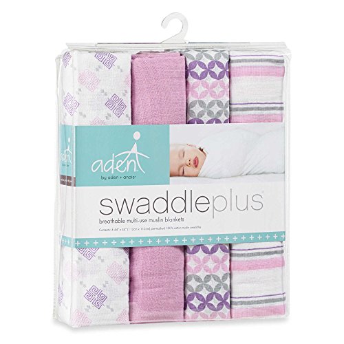 100 %コットンモスリン、ソフト、Sweet PeaおくるみPlus毛布、(パックof 4 )