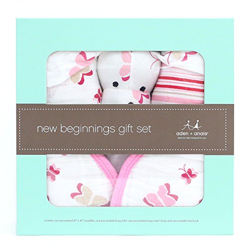 (エイデン アンド アネイ)aden+anais new beginnings gift set single ワンちゃん ぬいぐるみ付きタオル チョウチョ柄 おくるみ よだれかけ ギフトセット aa-sku1206 [並行輸入品]