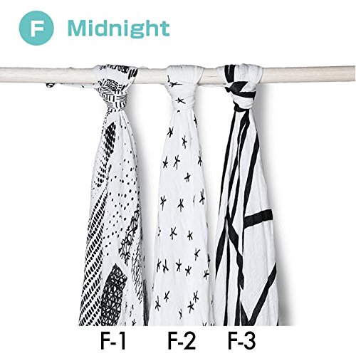aden + anais (エイデンアンドアネイ) おくるみ 3枚セット バンブー SILKY SOFT ブランケット スワドル 出産祝い 【並行輸入品】 F Midnight