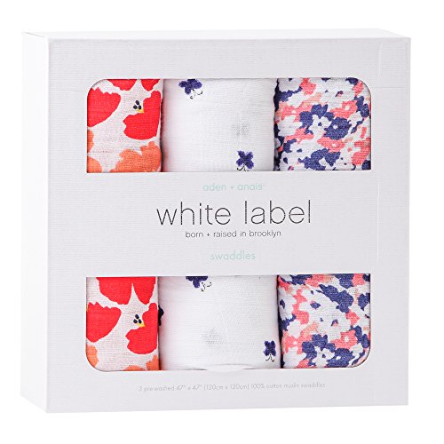 エイデンアンドアネイ おくるみ 3枚セット ホワイトラベル White label swaddle ブランケット (02/flora(WL2001)) aden+anais [並行輸入品]