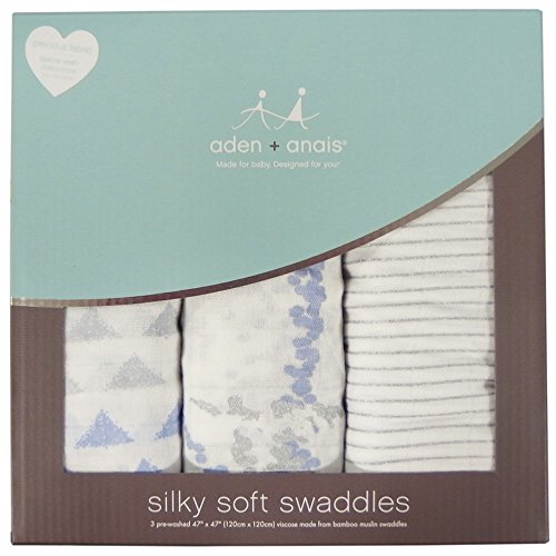エイデンアンドアネイ ADEN+ANAIS おくるみ バンブー 3枚セット シルキーソフト モスリン スワドル (METALLIC BLUE MOON BIRCH) [並行輸入品]