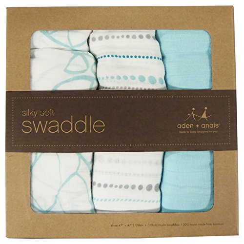 エイデンアンドアネイ ADEN+ANAIS おくるみ バンブー 3枚セット シルキーソフト モスリン スワドル (AZURE) [並行輸入品]