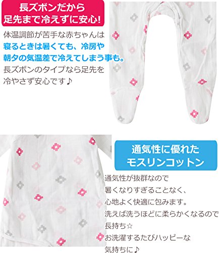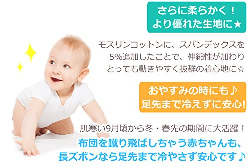 通気性抜群のモスリンコットンを使用しているから汗をかきやすい赤ちゃんも快適に過ごす事ができます。