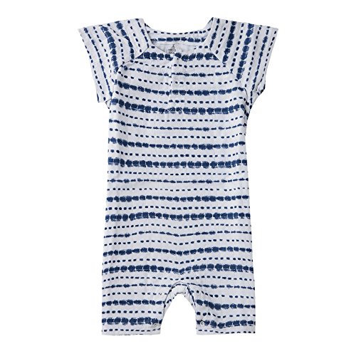 エイデンアンドアネイ 半袖 ロンパース ショート スリーブ ヘンリー ワンピース short sleeve henley one piece ベビーウェア オーバーオール (サイズ:0-3m、カラー:indigo shibori stripe) aden+anais [並行輸入品]