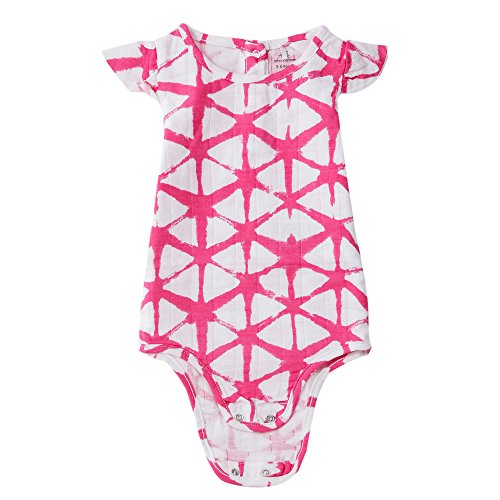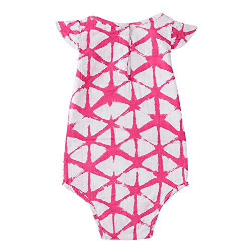 エイデンアンドアネイ 半袖 ロンパース フラッター スリーブ ワンピース flutter sleeve one piece モスリンコットン ベビーウェア (サイズ:0-3m、カラー:berry shibori cubed) aden+anais [並行輸入品]