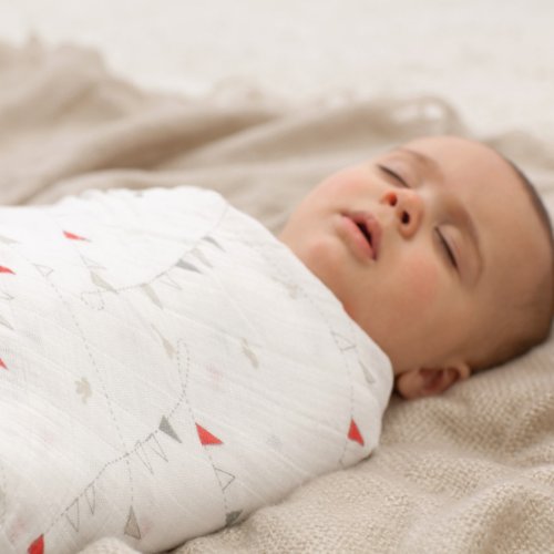 - スワドリングの際に赤ちゃんをしっかりと包める120×120cmの大判サイズのおくるみです。