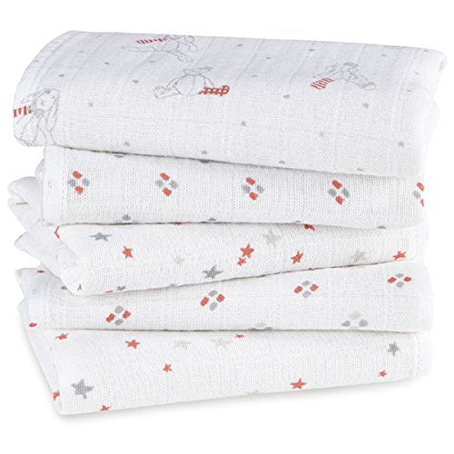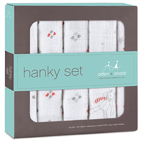 aden+anais(エイデンアンドアネイ)のモスリンコットン100%のハンカチ5枚セットです。 お洒落なaden+anais(エイデンアンドアネイ)のハンカチセットで赤ちゃんはいつも快適、清潔です。 モスリンコットン100%のハンカチは、赤ちゃんの繊細なお肌に優しい柔らかさです。 肌触りは洗うほどに柔らかくなります。 大きめサイズ(34×34 cm)のハンカチで、汗取りや、よだれ拭きとして最適です。 お手入れも簡単!洗濯機で洗えますので実用的です! 丈夫なので毎日お使いいただけます。ママにとってのマストアイテムです。