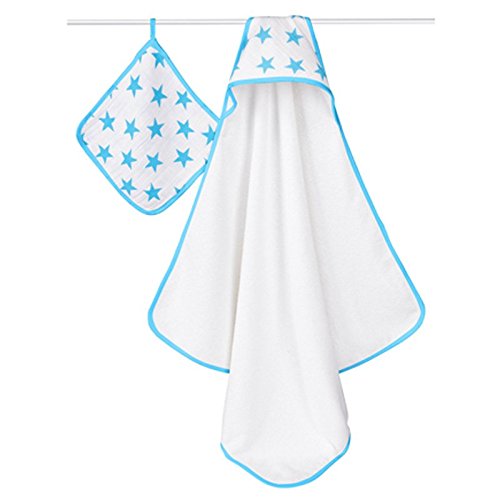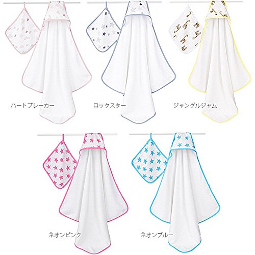 [正規輸入品](エイデンアンドアネイ)aden+anais フード付きタオル & ウォッシュクロス セット (ネオンブルー)
