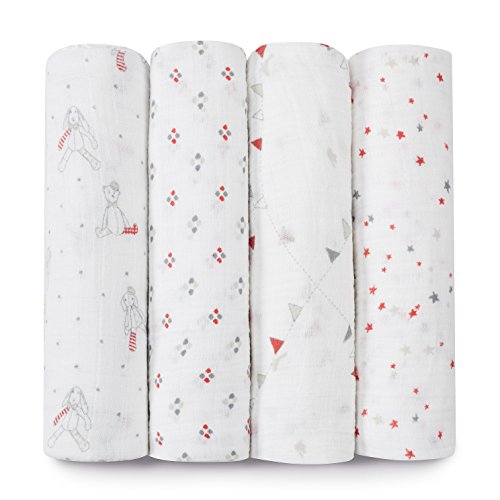 「aden+anais(エイデンアンドアネイ)」のおくるみ4枚セット。