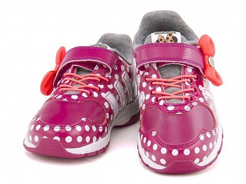ディズニーの人気キャラクター「ミニーマウス」をモチーフにしたインファントシューズ☆ベルクロのリボンがとっても可愛いアイテムです。ゴム紐×面ファスナー仕様のベルトで、お子様ご自身でも脱ぎ履きしやすいだけでなく、フィット感も◎。足のフィット感を高め衝撃を吸収し、通気性、防臭性に優れた、軽快な歩行を支えるOrtholiteインソールを搭載しています。※展開サイズ:キッズ