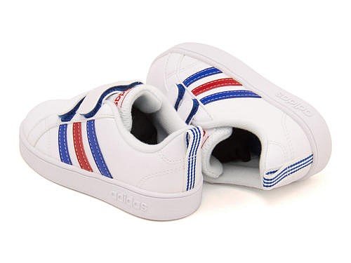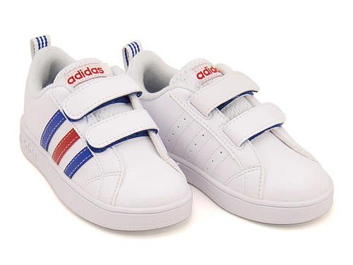 シンプルなコートスタイルのスニーカー VALCLEAN2のキッズモデル。足元に旬のアクセントを作るホワイトを基調としたトリコロールカラーのルックスが、清潔感のあるクリアーな足元を演出。着脱がスムーズな2本ストラップを合わせ、脱ぎ履きがラクチン♪ 柔らかなシンセティックレザーのアッパーに、スリーストライプスとadidasロゴをあしらい、クリーンでスタイリッシュに仕上げています。パパやママとリンクコーデできる、お洒落なファミリーペアモデル♪※展開サイズ:キッズ