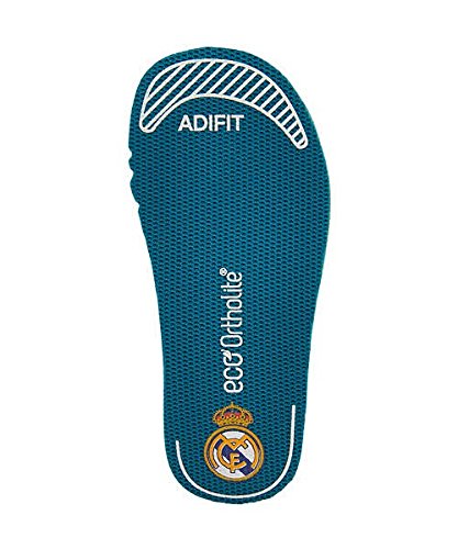 スペイン・リーガエスパニョーラ所属クラブ、レアル・マドリードのロゴをヒールに配したベビー向けシューズ。耐久性に優れた軽量アッパーと、グリップ力・耐久性に優れ、ターフコートを思わせるアウトソールを備えたプレイグラウンドにもぴったりの一足。インソールには快適な履き心地で、足を清潔に保ってくれる「EcoOrthoLite(エコオーソライト)」を採用。またインソールを取り出し、お子様の足裏に合わせ適正なサイズか確認できるadiFIT(アディフィット)を採用。サイズ変更の目安が一目で分かる仕様です。脱ぎ履きのラクなストラップとゴム紐仕様。パブリックビューイングで、お子様に履かせて一緒に応援を盛り上げたい一足です♪※展開サイズ:キッズ