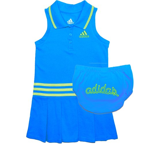 adidas(アディダス)女の子用アクアノースリーブポロワンピース(ロゴ入りブルマー付き) 3T 3歳用 100cm-105cm 出産祝い,子供用水色襟付きワンピース,【並行輸入】