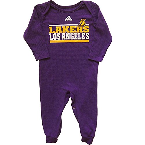 adidas(アディダス)ロサンゼルス・レイカーズ,男の子用パープルLakersロゴ入りリブ編み風足つきカバーオール(6-9months) [並行輸入品]