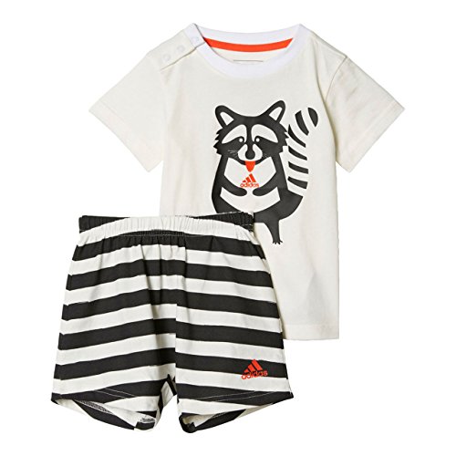 アディダス(adidas) ベビー アニマルTシャツ上下セット MLS10 BK3008 ホワイト/ブラック 80