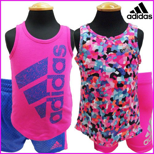 adidas アディダス ベビー服 女の子 タンクトップ ショートパンツ 上下セット セットアップ - デザインA/12M=75~80cm