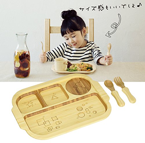 お食い初めから離乳食、普段使いまで、子供たちの成長に合わせたナチュラルな食器。天然素材の優しいぬくもりと豊かな自然への感謝の気持ちを、食育を通して子供たちへ伝えていけたら。ベビーこども食器のナチュラルリビングは天然の竹(孟宗竹)を使用し、日本の職人たちが仕上げた天然素材食器です。■ 食べやすい・使いやすいにこだわった形と食への興味を湧き立てる可愛い絵柄で子供の想像性を育みます。ナチュラルリビングの食器は職人・デザイナー・設計士など各工程のスペシャリストがお客様の声をもとに生み出す高品質で独創的な天然素材食器です。日本の職人だからこそできる技術と日本人ならではの細かい気遣い・工夫によって他には真似できないデザインが魅力です。■ 入念な6層コーティングにより食器洗浄機に対応。油や水分をはじくので色の濃い料理や揚げ物でも染み込みません。自社工場にて丁寧にしっかりとコーティングすることで油や水分をはじきます。ツルツルとした滑らかな手触りが特徴的で家庭用食洗器に対応。塗料は食品衛生法適合の大手メーカー製を使用しています。■ 自社所有の竹林で育成した天然孟宗竹を使用しています。竹は抗菌・殺菌・脱臭性に優れ、癒しや安らぎを与える効果も兼ね備えた食器加工に最適な素材です。なた幼児期のうちに天然素材に多く触れることは子ども安定した豊かな心の成長・思考にとても良い効果があるといわれています。■軽さと強度に自身があります。古くから建設資材から雑貨小物まで、さまざまな場所で活躍してきた竹素材。竹は一般的な木材と比べ、倍以上の強度を持つ優れもの、とっても丈夫で長持ちなのも特徴の1つです。万が一、破損が起きた場合でも、ガラスや陶器のようにこまやかな破片が飛び散り怪我をする心配も軽減されます。原産国:日本原材料:天然孟宗竹原材料産地:中国・江西省※自社保有竹林にて収穫表面:ウレタン塗装(食品衛生基準適合の日本製塗料を使用)加工:製材・粗削り 海外自社工場(中国江西省)/成型・塗装 国内自社工場(埼玉県越谷市)○家庭用食器洗浄機○家庭用食器洗剤×電子レンジ洗った後は柔らかい布で水分を拭き取り陰干しして下さい。《おこさまランチプレートセット》三角形や四角形、円形などを組み合わせた幾何学模様が刻まれたランチプレート。見るお子様によって様々なカタチへと変化する、変幻自在のマテリアル。昨日はしとしと雨粒に見えたまんまる模様が、今日は青空に浮かぶ、しゃぼん玉に見えたり。お食事の時間を通して想像力、発想力も育みます。ナチュラルリビングスプーンS・フォークSがついて、届いたその日からセットでお使いいただけます。ご出産祝や、お誕生日祝いにも最適です。セット内容:プレート×1 ナチュラルリビングスプーンS×1 ナチュラルリビングフォークS×1※名入れには、ご注文からお届けまで2~3週間かかります。