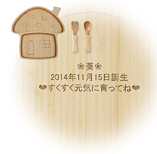 [オーダーメイド名入れ] アグニー きのこのおうちプレートセット 天然竹素材 バンブー ベビー食器 子ども用食器 食育
