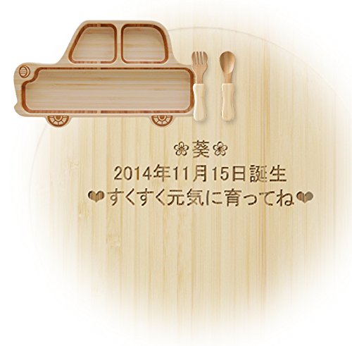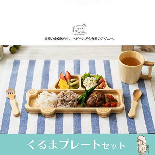 [オーダーメイド名入れ] アグニー くるまプレートセット 天然竹素材 バンブー ベビー食器 子ども用食器 食育