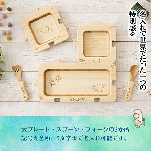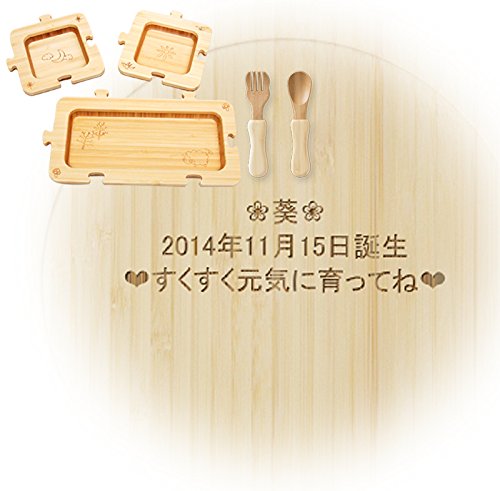 お食い初めから離乳食、普段使いまで、子供たちの成長に合わせたナチュラルな食器。天然素材の優しいぬくもりと豊かな自然への感謝の気持ちを、食育を通して子供たちへ伝えていけたら。ベビーこども食器のナチュラルリビングは天然の竹(孟宗竹)を使用し、日本の職人たちが仕上げた天然素材食器です。■ 食べやすい・使いやすいにこだわった形と食への興味を湧き立てる可愛い絵柄で子供の想像性を育みます。ナチュラルリビングの食器は職人・デザイナー・設計士など各工程のスペシャリストがお客様の声をもとに生み出す高品質で独創的な天然素材食器です。日本の職人だからこそできる技術と日本人ならではの細かい気遣い・工夫によって他には真似できないデザインが魅力です。■ 入念な6層コーティングにより食器洗浄機に対応。油や水分をはじくので色の濃い料理や揚げ物でも染み込みません。自社工場にて丁寧にしっかりとコーティングすることで油や水分をはじきます。ツルツルとした滑らかな手触りが特徴的で家庭用食洗器に対応。塗料は食品衛生法適合の大手メーカー製を使用しています。■ 自社所有の竹林で育成した天然孟宗竹を使用しています。竹は抗菌・殺菌・脱臭性に優れ、癒しや安らぎを与える効果も兼ね備えた食器加工に最適な素材です。なた幼児期のうちに天然素材に多く触れることは子ども安定した豊かな心の成長・思考にとても良い効果があるといわれています。■軽さと強度に自身があります。古くから建設資材から雑貨小物まで、さまざまな場所で活躍してきた竹素材。竹は一般的な木材と比べ、倍以上の強度を持つ優れもの、とっても丈夫で長持ちなのも特徴の1つです。万が一、破損が起きた場合でも、ガラスや陶器のようにこまやかな破片が飛び散り怪我をする心配も軽減されます。原産国:日本原材料:天然孟宗竹原材料産地:中国・江西省※自社保有竹林にて収穫表面:ウレタン塗装(食品衛生基準適合の日本製塗料を使用)加工:製材・粗削り 海外自社工場(中国江西省)/成型・塗装 国内自社工場(埼玉県越谷市)○家庭用食器洗浄機○家庭用食器洗剤×電子レンジ洗った後は柔らかい布で水分を拭き取り陰干しして下さい。《ジグソープレートセット》つながる食器、これがナチュラルリビングの自慢のデザイン。パズルのような楽しいプレートは3つつなげて使うのはろちろん、お料理やおこさまの食欲にあわせて別々に使ったり、2つだけ使ったりと、なんと組み合わせは120パターン以上!!おこさまの想像力、創造力は無限大。食育と知育を兼ね揃えたまさに一石二鳥のプレートです。ご出産祝や、プレゼントにも最適です。セット内容:プレート大×1 プレート小×2 ナチュラルリビングスプーンS×1 ナチュラルリビングフォークS×1サイズ:プレート大 23×12×2.1cm プレート小 12×12×2.1cm スプーン・フォーク 各11cm※名入れにはご注文からお届けまで2~3週間かかります。