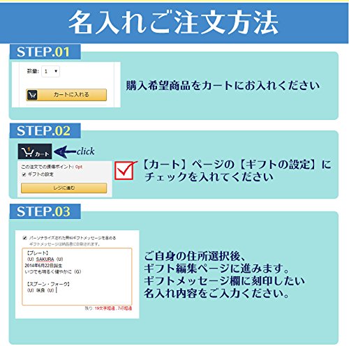 - 「ギフトの設定」にチェックを入れ、ギフトメッセージ欄にてご希望の刻印内容をご連絡下さい。