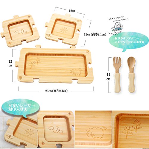 [オーダーメイド名入れ] アグニー ジグソープレートセット 天然竹素材 バンブー ベビー食器 子ども用食器 食育