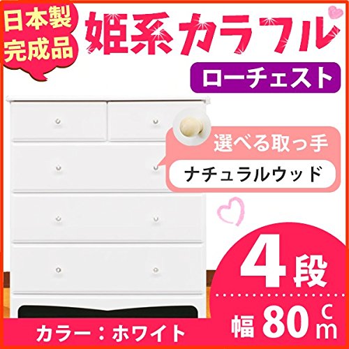 姫系カラフルローチェスト/収納タンス 【4段 ホワイト×取っ手:ナチュラルウッド/全8個】 幅80cm 日本製 【完成品】 生活用品 インテリア 雑貨 インテリア 家具 収納家具 子供用家具 ベビー、キッズチェスト
