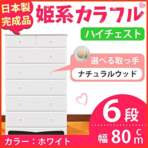 姫系カラフルハイチェスト/収納タンス 【6段 ホワイト×取っ手:ナチュラルウッド×全12個】 幅80cm 日本製 【完成品】 生活用品 インテリア 雑貨 インテリア 家具 収納家具 子供用家具 ベビー、キッズチェスト top1-ds-1611595-ah [簡素パッケージ品]