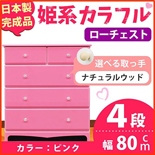 姫系カラフルローチェスト/収納タンス 【4段 ピンク×取っ手:ナチュラルウッド/全8個】 幅80cm 日本製 【完成品】 生活用品 インテリア 雑貨 インテリア 家具 収納家具 子供用家具 ベビー、キッズチェスト