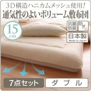 - 3D構造ハニカムメッシュ使用!通気性のよいボリューム敷布団 7点セット ダブル