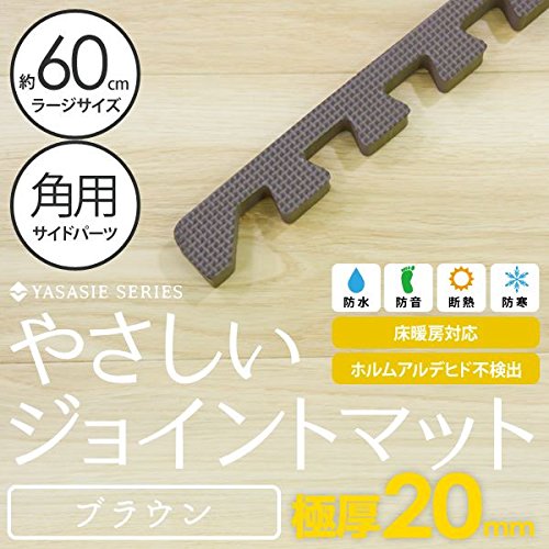 - 極厚ジョイントマット 2cm 大判 【やさしいジョイントマット 極厚 角用単品サイドパーツ ラージサイズ(60cm×60cm) ブラウン(茶色) 】 床暖房対応 赤ちゃんマット
