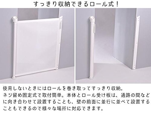 製造国:製造:中国、企画:スウェーデン 素材・材質:ゲート本体/軸:アルミニウム、プラスチック部:ポリアセタール樹脂、ポリアミド6、ポリアミド、他ロール:非フタル酸PVC(防炎加工済)ロール受け板:ポリアミド 商品サイズ:ゲート本体/ロール:高さ80×長さ9~100cm、収納部:6.5cm角×高さ87cm、ロール受け板:幅5×厚さ1.5×高さ84cm 重量:約1.3kg 仕様:対象年齢:6~24か月まで防炎加工 セット内容:ゲート本体、ロール受け板、取付金具、取扱説明書、保証書(保証期間:1年間)
