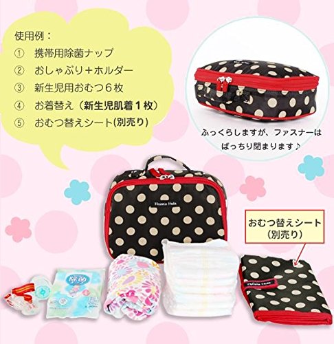 おでかけで必要な枚数のおむつが、すっきり収納できるおむつポーチ♪コンパクトなサイズながら、新生児から一番大きいパンツ型まで対応しています。